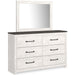 | Details | B1190B4: Includes headboard, footboard and rails, Made of engineered wood (MDF/particleboard) and decorative laminate, White rustic finish with replicated cedar grain, Foundation/box spring required, sold separately, Mattress not included, sold separately, Assembly required, Bed is compatible with an adjustable base, B1190B1: Includes dresser with mirror, Made of engineered wood (MDF/particleboard) and decorative laminate, White rustic finish with replicated cedar grain, Rustic gray planked replicated oak grain with authentic touch, 6 smooth-gliding drawers with faux linen lining, Large scale dark colored handles, Mirror attaches to back of dresser, Assembly required, B1190-44: Made of engineered wood (MDF/particleboard), and decorative laminate, White rustic finish with replicated cedar grain, Rustic gray planked replicated oak grain with authentic touch, 4 smooth-gliding drawers with faux linen lining, Large scale dark colored handles, Safety is a top priority, clothing storage units are designed to meet the most current standard for stability, ASTM F 2057 (ASTM International), Drawers extend out to accommodate maximum access to drawer interior while maintaining safety, Assembly required, | |