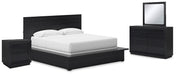 Londer King Panel Bed with Mirrored Dresser and Nightstand