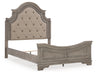 Details B751B2: Includes queen panel headboard, footboard and rails, Made with acacia wood, birch and acacia veneers, engineered wood and cast resin components, Antiqued gray finish, Ornately shaped headboard with inset upholstered cushion, Foundation/box spring required, sold separately, Mattress not included, sold separately, Assembly required, B751B1: Includes dresser and mirror, Made with acacia wood, birch and acacia veneers, engineered wood and cast resin components, Two-tone finish; antiqued gray body with a rich, deep walnut brown finish on top, Dark bronze-tone bails and knobs, 7 smooth-gliding drawers with dovetail construction, Framed drawer fronts , Overlay decorative corbels, Mirror attaches to back of dresser, Assembly required,