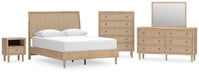 Clean-lined and contemporary—but far from stark—this bedroom package is a fresh style awakening. Pairing a light finish with replicated oak grain and textured beige details that replicate the look of cane, its mixed materials bring a naturally versatile vibe to your bedroom. Sleek, simple hardware plays perfectly with the modern aesthetic.