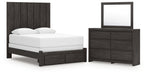 Queen Panel Storage Bed with Mirrored Dresser
