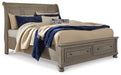 Lettner Queen Sleigh Bed with 2 Storage Drawers with Mirrored Dresser, Chest and Nightstand