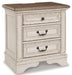 | Details | B743-46: Made of veneers, wood and engineered wood, with cast resin components, Antiqued two-tone finish, Dark bronze-tone finished metal hardware, 5 smooth-gliding drawers with dovetail construction, Includes tipover restraint device, Small Space Solution, Includes tipover restraint device, B743-93: Made of veneers, wood and engineered wood, with cast resin components, Antiqued two-tone finish, 3 smooth-gliding drawers with dovetail construction, Dark bronze-tone finished metal hardware, 2 electrical outlets and USB charging ports, Power cord included; UL Listed, Small Space Solution, B743B1: Made of veneers, wood and engineered wood, with cast resin components, Antiqued two-tone finish, 7 smooth-gliding drawers with dovetail construction, Dark bronze-tone hardware, Mirror attaches to back of dresser, Assembly required, Includes tipover restraint device, B743B2: Made of veneers, wood and engineered wood, with cast resin components, Includes upholstered headboard, footboard and rails, Distressed, chipped white finish, Polyester upholstered headboard with foam cushion and button tufting, Foundation/box spring required, sold separately, Mattress available, sold separately, Assembly required, Bed is compatible with an adjustable base, | |