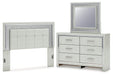 Zyniden Queen Upholstered Panel Headboard with Mirrored Dresser