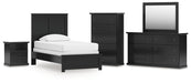 Twin Panel Bed with Mirrored Dresser, Chest and Nightstand