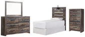 Drystan Twin Panel Headboard with Mirrored Dresser and Chest
