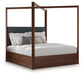 Details Includes canopy, upholstered headboard, footboard, rails, posts and slats, Made with hardwood solids, mango wood veneer and MDF substrates , Side rails feature laminated solid hardwood slat support rails (or LVL) with glued and screwed blocking for added strength, Complex, rich dark brown finish, Foam headboard cushion with polyester upholstery , Measure room, including ceiling height, to ensure bed clears fans and light fixtures, Foam cushion with polyester upholstery , Foundation/box spring required, sold separately , Mattress available, sold separately , USB-A and USB-C charging ports, Power cord included; UL Listed, Assembly required