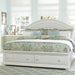 Make the most of your space with the cottage style Summer House storage bed. The oyster white finish is accented by louvered panels and arched crown molding, adding to the cottage charm. Made of pine and poplar solids, this bed features bolt-on rails and a center supported slat system, making this a sturdy and reliable bed. Store clothing or blankets in the full extension drawers located in the footboard, equipped with dust proofing to protect your belongings and wooden hardware to make for easy opening.