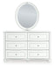 Details Includes dresser and mirror, Made with engineered wood (MDF/particleboard/plywood) and decorative laminate for the right balance of affordability and durability , Matte white finish, Decorative laminate replicates natural or man-made material surfaces with consistent color, pattern and texture , Crystal drawer knobs, 6 smooth-gliding drawers, Drawer interiors are lined with a faux linen laminate for a clean, finished look, Safety is a top priority, clothing storage units are designed to meet the most current standards for stability, ATM F 2057 (ASTM International), Drawers extend out to accommodate maximum access to drawer interior while maintaining safety, Mirror can be mounted on wall vertically , Minor assembly required