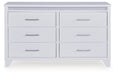 Details Made with hardwood solids and MDF substrates, White paint finish, Inset acrylic glitter accents, Horizontal metal drawer pulls, 6 drawers with fully finished interiors, dovetail construction and heavy duty ball-bearing side glides, Textured drawer fronts