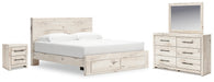 Lawroy King Panel Storage Bed with Mirrored Dresser and Nightstand