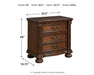 Details B764B9: Includes poster headboard/footboard panels, rails and headboard posts, Made with hardwood solids, cherry veneer with MDF substrates, decorative cast resin and furniture grade plastic components , Cherry brown finish, Headboard with metallic accent filigree, Foundation/box spring required, sold separately, Mattress available, sold separately, Assembly required, B764B1: Includes dresser and mirror, Made with hardwood solids, cherry veneer with MDF substrates, decorative cast resin and furniture grade plastic components , Cherry brown finish, Decorative metal drawer pulls with dark bronze-tone finish, 7 drawers with fully finished interior, dovetail construction and ball-bearing side glides, Mirror attaches to back of dresser, B764-93: Made with hardwood solids, cherry veneer with MDF substrates, decorative cast resin and furniture grade plastic components, Cherry brown finish, Decorative metal drawer pulls with dark bronze-tone finish, 2 drawers with fully finished interior, dovetail construction and ball-bearing side glides, Pull-out tray behind bottom drawer,