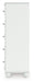 Details Made with engineered wood (MDF/particleboard/plywood) and decorative laminate for the right balance of affordability and durability, Matte white finish, Decorative laminate replicates natural or man-made material surfaces with consistent color, pattern and texture, Crystal drawer knobs, 5 smooth-gliding drawers, Drawer interiors are lined with a faux linen laminate for a clean, finished look, Safety is a top priority, clothing storage units are designed to meet the most current standards for stability, ATM F 2057 (ASTM International), Drawers extend out to accommodate maximum access to drawer interior while maintaining safety, Minor assembly required