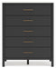 Details B2616-81: Made with durable engineered wood frame and solid wood blocking, Polyester upholstery, Bed does not require additional foundation/box spring; accommodates most zero clearance adjustable bases, Mattress available, sold separately, Assembly required, B2616B1: Includes dresser and mirror, Made with engineered wood (MDF/particleboard/plywood) and decorative laminate for the right balance of affordability and durability, Matte black finish with subtle replicated wood grain, Replicated white marble top, Decorative laminate replicates natural or man-made material surfaces with consistent color, pattern and texture , Handles with light bronze-tone finish, 6 smooth-gliding drawers , Drawer interiors are lined with a faux linen laminate for a clean, finished look, Mirror attaches to back of dresser; can also be mounted on wall horizontally or vertically, Safety is a top priority, clothing storage units are designed to meet the most current standard for stability, ASTM F 2057 (ASTM International), Drawers extend out to accommodate maximum access to drawer interior while maintaining safety, Minor assembly required, B2616-345: Made with engineered wood (MDF/particleboard/plywood) and decorative laminate for the right balance of affordability and durability, Matte black finish with subtle replicated wood grain, Replicated white marble top, Decorative laminate replicates natural or man-made material surfaces with consistent color, pattern and texture, Handles with light bronze-tone finish, 5 smooth-gliding drawers, Drawer interiors are lined with a faux linen laminate for a clean, finished look, Safety is a top priority, clothing storage units are designed to meet the most current standard for stability, ASTM F 2057 (ASTM International), Drawers extend out to accommodate maximum access to drawer interior while maintaining safety, Minor assembly required, B2616-91: Made with engineered wood (MDF/particleboard/plywood) and decorative laminate for the right balance of affordability and durability, Matte black finish with subtle replicated wood grain, Replicated white marble top, Decorative laminate replicates natural or man-made material surfaces with consistent color, pattern and texture, Handles with light bronze-tone finish, 1 smooth-gliding drawer, Drawer interior is lined with a faux linen laminate for a clean, finished look, Open shelf, USB and Qi wireless charging options, Ambient lighting under the top, Power cord included; UL Listed, Minor assembly required,