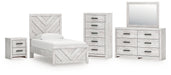 Cayboni Twin Panel Bed with Mirrored Dresser, Chest and Nightstand