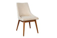 Add timeless elegance and modern comfort to your space with this Mid-Century Modern Upholstered Dining Chair. Featuring a gently curved backrest and plush cushioned seat, this chair offers both style and support for everyday use. The solid wood legs provide durability and a natural finish that complements the neutral upholstery, making it a perfect addition to dining rooms, offices, or accent seating arrangements. Its clean lines and minimalist design blend effortlessly into contemporary and retro-inspired interiors.