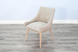 This chair seamlessly combines contemporary style with classic comfort. The light grey upholstery not only adds a touch of modern elegance but also effortlessly complements a variety of decor styles. The wheat-colored wood legs provide a warm and inviting contrast, adding a natural element to the overall design. Crafted with both aesthetics and comfort in mind, the chair boasts a plush seat and a supportive backrest for a delightful dining experience.