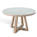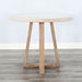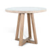 This elegant piece seamlessly marries contemporary design with a hint of rustic allure, showcasing a harmonious blend of wheat and light grey tones. The wire-brushed texture enhances the natural beauty of the mindi wood, creating a distinctive and visually appealing surface. The round shape adds a touch of sophistication to your dining space, promoting an intimate and inclusive atmosphere for shared meals and gatherings.