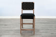 Elevate your dining space with this modern woven-back counter height stool, where style meets substance. Featuring a black woven strap backrest and a textured upholstered seat, this piece adds contrast and character. Supported by a solid wood frame, it's as durable as it is distinctive—perfect for contemporary interiors with a bold edge.