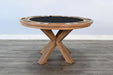 Host your game nights in style with this dual-function round poker and dining table. Crafted with a natural wood finish and supported by a striking X-shaped pedestal base, this table effortlessly transforms from a sophisticated dining surface to a game-ready poker table. The reversible top reveals a felt-lined gaming surface complete with built-in cup holders and chip trays for maximum convenience. Blending elegance with functionality, it’s perfect for entertaining guests and enhancing any living or game room space.