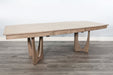 This elegant piece seamlessly combines a rich, coffee-inspired hue with the timeless beauty of Mahogany wood, creating a warm and inviting centerpiece for your dining area. The table features a convenient extension leaf, providing flexibility for accommodating gatherings of various sizes. Its unique shaped legs add a touch of sophistication, making a statement in any dining space.
