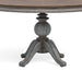 Effortlessly transition from small family meals to entertaining additional dining guests with the versatile Plymouth round dining table. This classic design easily fits in smaller dining areas to comfortably seat four and can expand to accommodate more by adding the included leaf. Featuring an intricately carved single pedestal base and a distressed graywash finish accented by a medium brown top, this table evokes a cottage-style charm that adds warmth and character to your home.