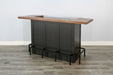 Bring the bar experience home with this industrial U-shaped bar counter. Designed for entertaining, it features a raised wood bar top, sleek black frame, and ample storage below. Two drawers, four open shelves, and an integrated stemware rack provide space for everything from cocktail tools to glassware. A built-in metal foot rail completes the look while adding comfort for guests. Perfect for basements, game rooms, or stylish dining spaces.
