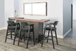 - Sturdy black metal foot rail offers added comfort and industrial flair
