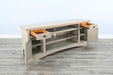 • Two-tone finish with a light wood top and painted base adds modern farmhouse charm