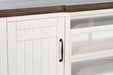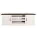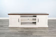 Blending rustic charm with practical functionality, this Two-Tone Farmhouse Media Console is the perfect centerpiece for your living room entertainment setup. The warm, natural wood top contrasts beautifully with the crisp white base, creating a classic farmhouse-inspired look. Behind the paneled doors on each side is spacious shelving for concealed storage, while the open center shelves offer easy access to media components, game consoles, or décor. Ideal for both style and storage, this console keeps your space tidy while adding a cozy, lived-in feel.