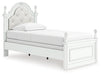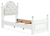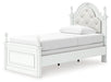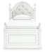 Fit for a princess. This twin upholstered panel bed’s crisp matte white finish pairs with charming ornate beading and sumptuous button-tufted upholstery—perfect for your girly girl. Decorative ball tops and multicolored LED lighting in the headboard are the crowning touches to make your little one feel like royalty.