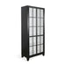 The clean lines and black finish make it a versatile piece that can complement various interior styles, from modern to traditional. The glass doors allow for easy viewing and access to the contents, while the simple latch mechanism keeps your items secure. The divided glass panes add a touch of elegance, making this cabinet not only functional but also a beautiful focal point in any room. Perfect for living rooms, dining rooms, or hallways.