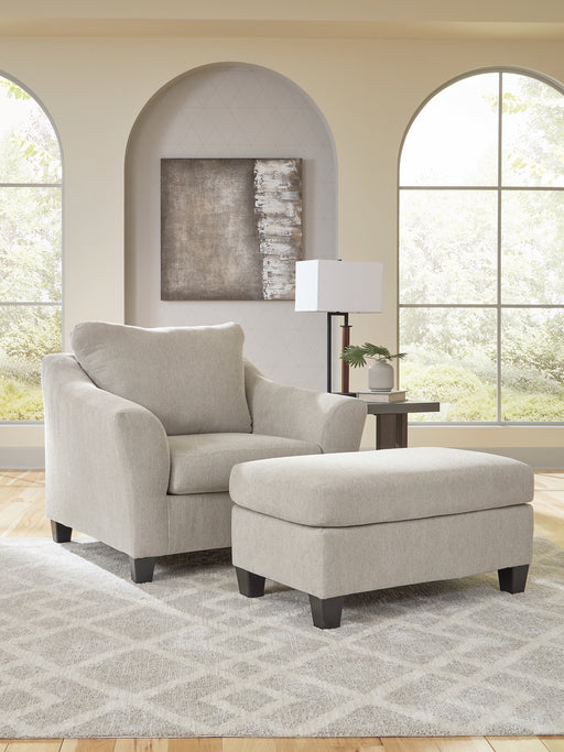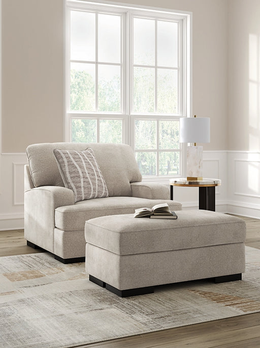 Benchcraft®This oversized chair and ottoman package has an alluring look that's guaranteed to turn heads. Richly textured fabric in a light, easygoing hue is ...