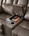 Details Pull tab reclining for full body comfort, Reinforced frame and metal seat box provide added stability, Attached cushions, High-quality foam cushions wrapped in poly fiber, Faux leather upholstery, Center console with 2 cup holders and hidden storage