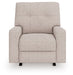 Sincere in its styling, this recliner marries classic function with modern design elements for truly transitional appeal. Its track arms lend a contemporary vibe, while easy pull tab reclining ups the comfort level. And with the recliner's goes-with-anything neutral upholstery, styling is made simple. All that’s left for you to do is sit back and relax.