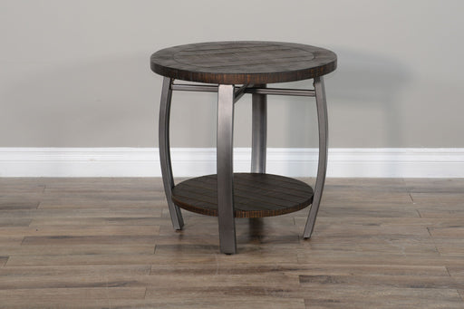 Sunny DesignsBring an industrial touch to your seating ensemble with this charming end table. Constructed from mahogany solids and a black-finished metal base, ...