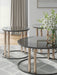 Round up a sleek, modern look with this table set. The rounded black glass tops offer the perfect perch for drinks, snacks or decor displays. Shapely brass-tone legs provide an eye-catching contrast to the matte black frames. Complete with a coffee table and two end tables, this sharp-looking table set easily complements other contemporary pieces.