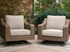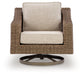 Who says the great outdoors isn’t made for luxury living? This outdoor swivel lounge chair offers all of the high-end design, plush comfort and durability you could ask for, and then some. Its all-weather aluminum frame and resin wicker provide the easy-breezy look you love without the high maintenance. And rest assured—the high-performing Nuvella® fabric is made to stand up to the elements.