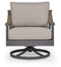 A refined marriage of style and durability, this outdoor swivel rocker lounge chair adds contemporary flair to your porch or patio. Wood tones and shades of gray lend a versatile, neutral appeal. And this chair is built to last, thanks to its rust-resistant frame and cleanable, UV-resistant fabric.