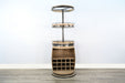 This wine barrel-inspired display adds rustic elegance to your home bar or entertainment area. Featuring a swivel base and built-in wine cubbies, it seamlessly combines style and functionality. The rich finish and sturdy metal accents ensure durability while enhancing its vintage charm. Perfect for showcasing your wine collection, glassware, or bar essentials, it’s a standout piece for any gathering space.