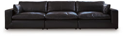 Details Includes 3 modular pieces: left-arm facing corner chair, armless chair and right-arm facing corner chair, "Left-arm" and "right-arm" describe the position of the arm when you face the piece, Modular pieces can float anywhere; sides are finished (with no connectors), Corner-blocked frame, Loose back cushions and attached seat cushions, Feather-fiber blend cushion, Arm bolster pillows included, 100% top grain leather covers inside areas such as the back, seat and arm cushions; skillfully matched faux leather covers the remaining areas, Due to its natural origin, real leather can show individual characteristics such as healed scars, growth marks, grain variation and shade variation, Natural variations make each hide unique and do not detract from the wearing qualities of leather, Non-skid legs, Platform foundation system resists sagging 3x better than spring system after 20,000 testing cycles by providing more even support, Smooth platform foundation maintains tight, wrinkle-free look without dips or sags that can occur over time with sinuous spring foundations