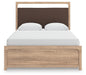 The natural wood tones and clean lines of this queen upholstered panel bed echo your easygoing style sensibilities. With a warm finish and replicated oak grain, its carefree character lightens up your bedroom. Curved inner corner details soften the look, while contrasting brown fabric modernizes the feel. And for added function, warm LED lighting adds serene ambiance at the touch of a button.