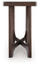 Master the art of casual contemporary design with the Korestone sofa table. Its softly rounded wood frame top pairs perfectly with an eye-catching double wishbone base and a rich brown finish for a decidedly here and now vibe. Talk about the ideal spot for decor, plants and more.