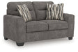 Strike a balance between the indulgent comfort you crave and the contemporary aesthetic you long for. The fabulously soft, mocha-colored upholstery of this loveseat takes neutrals to new heights. Plus there's plenty of room to spread out and relax solo or with your bestie. Geometric-patterned accent pillows perfect the richly on-trend aesthetic.