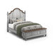 - Headboard and footboard feature wood molding, paneling and posters for classic style