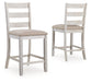 This upholstered bar stool invites you to raise the bar on small space living. An inspired choice for coastal chic or modern farmhouse settings, this comfortably cushioned bar stool with classic ladderback styling sports a grayish white finish with rub through effect for timeworn appeal.