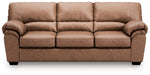 Modern comfort never looked so good. Sporting supremely soft yet durable cushions accented with high-fashion jumbo stitching, this stunning sofa is the ultimate choice in comfortably cool, contemporary style. Its caramel-hued faux leather indulges with an upscale feel and wows like the real thing.