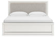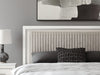 | Details | Includes upholstered panel headboard, panel footboard, platform rails and roll slats, Made with engineered wood (MDF/particleboard/plywood) and decorative laminate for the right balance of affordability and durability , Matte white finish with subtle replicated wood grain , Decorative laminate replicates natural or man-made material surfaces with consistent color, pattern and texture , Polyester upholstery , Chrome-tone and glitter accents, Bed does not require additional foundation/box spring; accommodates most zero clearance adjustable bases, Mattress available, sold separately, Minor assembly required | |