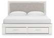 | Details | Includes upholstered panel headboard, storage footboard, platform rails and roll slats , Made with engineered wood (MDF/particleboard/plywood) and decorative laminate for the right balance of affordability and durability , Matte white finish with subtle replicated wood grain , Decorative laminate replicates natural or man-made material surfaces with consistent color, pattern and texture , Polyester upholstery, Chrome-tone and glitter accents, Large-scale chrome-tone handles with faceted details, 2 smooth-gliding drawers , Drawer interiors are lined with a faux linen laminate for a clean, finished look, Bed does not require additional foundation/box spring; accommodates most zero clearance adjustable bases with the addition of a bunkie board, Mattress available, sold separately, Minor assembly required | |